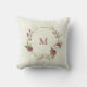 Magnifique coussin décoratif romantique avec des fleurs roses poussiéreuses et blanches et quelques jolies feuilles .