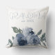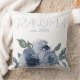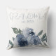 Cette coussin personnalisée présente un thème floral sain. Un bouquet de fleurs bleu aquarelle est placé en bas. Le titre de grand-mère est imprimé dans une police manuscrite avec l'année établie.