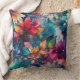 Coussin Fleurs d'aquarelle orange Turquoise en gras