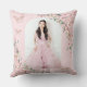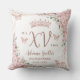 Personnalisez facilement et rapidement cet élégant coussin de fête Quinceañera / Sweet 16 rose avec des fleurs. Cliquez simplement sur le bouton Modifier à l'aide des outils de conception pour modifier les textes, changer les polices et les couleurs des polices. Caractéristiques de belles fleurs de cerisier à l'aquarelle, de papillons en rose gold et d'un cadre géométrique en rose gold. Ajoutez votre photo de quince à l'arrière du coussin. Cela fait un souvenir parfait pour Quinceanera, seize ans, 18e anniversaire, bal de débutante et bien d'autres occasions ! Articles assortis disponibles en magasin. (c) Somerset Fine Paperie