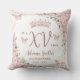 Personnalisez facilement et rapidement cet élégant coussin de fête Quinceañera / Sweet 16 à fleurs rose pâle. Cliquez simplement sur le bouton Modifier à l'aide des outils de conception pour modifier davantage les textes, changer les polices et les couleurs des polices. Caractéristiques de beaux fleurs de cerisier en aquarelle, papillons en or rose et un cadre géométrique en or rose. Ajoutez votre photo de quince à l'arrière du coussin. Cela fait un souvenir parfait pour Quinceanera, seize ans, 18e anniversaire, bal de débutante et bien d'autres occasions ! Articles assortis disponibles en magasin. (c) Somerset Fine Paperie