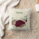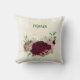 Belle housse de coussin romantique avec des fleurs de champagne et de Bourgogne et quelques feuilles vertes .