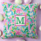 Coussin Fleurs de lapins de printemps de Pâques Monogramme