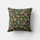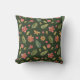 Un oreiller à jetons Whimsical présente des fleurs d'aquarelle et motif feuille sur arrière - plan vert forêt