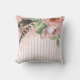 Ce beau, féminin coussin de décorateur a un talent de boho avec les rayures roses et blanches et les grandes fleurs roses avec des plumes sur l'avant et le dos.