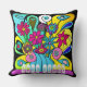 Coussin Fleurs psychédéliques vibrantes dans un vase