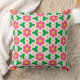 Coussin Fleurs roses chaudes avec vert géométrique