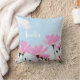 Fleurs roses Floral Nom de maman Fête des Mères Jetez de l'oreiller. Coussin floral personnalisé avec nom. Le texte est sur un arrière - plan roux avec des fleurs roses et un ciel bleu.