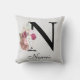 Coussin Fleurs roses initiales N monogrammées
