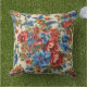 Coussin Fleurs rouges et bleues italiennes avec Feuilles l