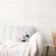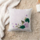 Magnifique coussin décoratif romantique avec des fleurs vert émeraude et violettes et quelques feuilles .