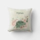 Magnifique coussin décoratif romantique présentant des fleurs vert sauge et rose blush ainsi que de jolies feuilles .