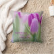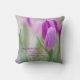 Cet élégant oreiller à lancer a un gros plan de tulipes violettes avec un arrière - plan flou, les mots Joyeux Fête des Mères et une belle citation de Saint Thérèse de Lisieux : Le plus beau chef-d'oeuvre du coeur de Dieu est le coeur d'une mère.