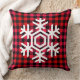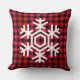 Coussin Flocon de neige blanc sur motif tartan rouge chaud