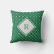 Un motif de flocon de neige vert et blanc sur cet oreiller. Monogram avec votre initiale.