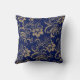 Cette image présente un joli motif tourbillon doré antique sur un arrière - plan bleu profond. Les deux côtés du coussin ont la même image. Elégant, avec un peu de style Art nouveau.