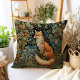 Ce coussin exquis présente un design fantaisiste qui donne vie à un renard délicieux au milieu d'une forêt luxuriante, entouré de feuilles botaniques complexes et de fines fleurs de style Art nouveau.