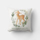 Ce design élégant est l'illustration d'un adorable cerf de bébé et d'une verdure d'aquarelle moderne en vert tendre et or. Personnalisez le coussin avec le nom de votre bébé en cliquant sur le bouton "Personnaliser".