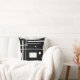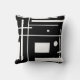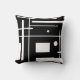 Cet oreiller blanc sur jet d'art abstrait noir est fait de formes géométriques blanches sur un arrière - plan de noir, créé par l'artiste Kirt Tisdale.