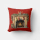 Un coussin avec une illustration chaleureuse et cosy avec une cheminée à l'ancienne. Embrassage suspendu avec soin. Garland suspendu au-dessus du manteau. Un feu chaud rugissant dans le foyer.