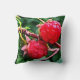 Les framboises rouges sauvages sont le thème de cet oreiller à jetons d'art. Deux baies juteuses de couleur cerise sont attachées aux branches de brasse brune rouge. Des feuilles verts et un arrière - plan aqua turquoise complètent le design abstrait. La photographie a été numériquement améliorée pour créer une impression impressionniste.