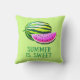Pillow in a whole watermelon accompanied by a juicy red slice dotted with black seeds. Below the fruit, bold green text reads “SUMMER IS SWEET,” evoking the refreshing, sugary delight of watermelon as a quintessential summer treat.