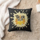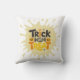 Get your Throw Pillow ready for the spookiest (and sweetest!) night of the year with this fun and festive sweatshirt. The design features bold, playful lettering that reads "TRICK OR TREAT" along with cute illustrations of pumpkins, a little ghost, and candy. The creamy, retro splash background gives it a unique and eye-catching look.