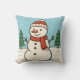 Joli oreiller de Noël avec une illustration amusante de bonhomme de neige.