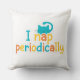 A fun and colorful decorative throw pillow featuring the funny quote "I nap periodically" and a cute sleepy cat design. Perfect to add a humorous touch to your couch or bedroom decor.