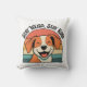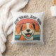 A playful square pillow showcasing a retro dog spreading positive and quirky vibes.