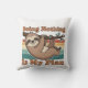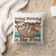 A playful square pillow with a retro sloth embracing slow living vibes.