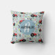 Ce mignon enfant moderne lance l'oreiller dispose d'un motif de dessin animé animal de ferme, avec un tracteur, des vaches, des cochons, des moutons, des poulets et des fleurs, et peut être personnalisé avec votre nom de garçon et monogramme. L'ajout parfait à thème d'agriculture à votre chambre d'enfants ou à la petite garderie.