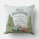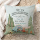 Ce coussin de naissance moderne et mignon comprend des arbres forestiers, des ours qui campent, des fleurs, une guitare et un feu de camp. Il peut être personnalisé avec le nom complet de votre bébé garçon, la date de naissance, le lieu de naissance, le poids à la naissance et la hauteur de naissance. Au verso du coussin se trouve un motif de camping bleu assorti. Le gardien de bébé de bois parfait pour votre bébé garçon en garderie.
