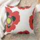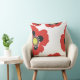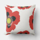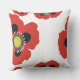 A delightful accent pillow featuring garden poppies with red petals.