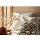 Ajoutez une touche de charme enchanté à la chambre de votre enfant ou à la salle de jeux avec ce coussin décoratif cupcake lapin fantaisiste. Présentant une illustration détaillée d'un adorable lapin savourant une friandise d'anniversaire, ce design est rehaussé de fraises vibrantes et de éclaboussures d'aquarelle artistiques pour un effet premium et boutique.