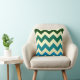 Coussin géométrie à la mode chevron tons vert et bleu