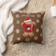Add a touch of holiday sweetness to your home with this gingerbread man Christmas throw pillow! The cute gingerbread cookie wears a red sweater with a snowman, Santa hat, and holds a candy cane, all surrounded by white snowflakes on a festive brown background. A perfect accent for your living room, couch, or bedroom décor this winter. Great as a holiday gift or seasonal home accent.