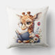 Coussin Girafe bébé mignonne lisant un livre avec des lune