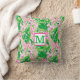 Un coussin à monogramme présentant un motif fantaisiste et prépa avec des girafes roses et vertes élégamment entrelacées avec des feuilles vertes luxuriantes et vibrantes. Les girafes se dressent hautes et ludiques sur fond rose, leurs longs cous s'étendant au milieu de grappes de verdure, ce qui ajoute une touche de couleur et une touche de charme de la nature. Le design général dégage une ambiance amusante et animée qui éclairerait n'importe quel espace, ce qui en fait une pièce décorative parfaite pour un salon cosy ou une nurserie ludique. Ce coussin apporte une touche unique et prépa à la décoration intérieure !