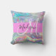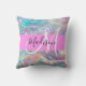 Nom monogramme irisé holographique de l'arc-en-ciel et oreiller de lancement initial. Votre nom personnalisé et votre monogramme sont écrits dans un élégant script écrit à la main avec un arrière - plan rose. Un cadeau d'anniversaire ou de Noël parfait !
