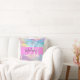 Nom monogramme irisé holographique de l'arc-en-ciel et oreiller de lancement initial. Votre nom personnalisé et votre monogramme sont écrits dans un élégant script écrit à la main avec un arrière - plan rose. Un cadeau d'anniversaire ou de Noël parfait !