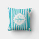 Coussin Girly Turquoise Peint Stripes Monogramme et nom