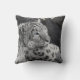 Une belle fin vers le haut d'image d'un léopard de neige avec des yeux bleus de glace regardant au-dessus de son épaule vous. Le double a dégrossi coussin carré avec la même image apparaissant des deux côtés.