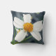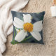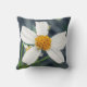 L'image de cet Oreiller de 16" est une photo originale de MaeFlowers d'un fleur sauvage. C'est une minuscule fleur blanche avec cinq pétales et un pompon orange jaune au centre. La photo est un closeup, avec la fleur elle-même au centre pointu, la tige verte et les feuilles de la fleur au centre doux, et le reste de l'arrière - plan dans des tons doux de gris foncé. La fleur est une mauvaise herbe, remplissant la pelouse de blancheur.