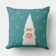 Gnome de Noël mignonne et flocons de neige sur Coussin turquoise.