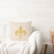 Elégante fleur de Lis dorée sur champagne clair couleur beige Jeter Oreiller. Fleur de lis se rapporte au pourcentage, à la vertu et à l'harmonie.