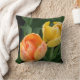 Peach et tulipes dorées décorent cette idée de décoration coussin en coton - adorley, de belles couleurs !