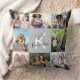 Coussin photo pour personnaliser pour un cadeau de graduation unique. Le modèle photo est mis en place pour vous d'ajouter 8 de vos photos préférées de vos années d'études. Vos photos sont affichées en format carré / instagram dans un simple montage photo de style grille. Ce modèle monogrammé est personnalisé avec le nom du diplômé et le texte original, personnalisé ou une citation inspirante, année de classe et école/collège. Le texte est écrit en écriture manuscrite et en typographie moderne. Design moderne et chic, gris, noir et blanc.