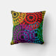 Cet oreiller de lancer a un design Black History de grands cercles formés de formes de goutte de pluie et de cercles en rouge, jaune, violet, vert et turquoise.