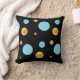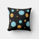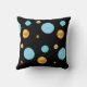 Belle housse de coussin avec de grands pois dorés et turquoise sur fond noir.